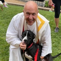 Besides presiding at Mass or around the Church and Rectory, you will most likely find Fr. John out walking the neighborhood with his dog, Axel.