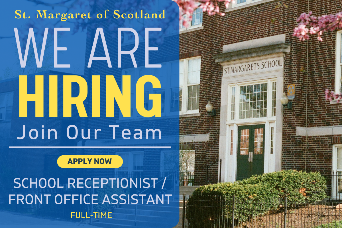 St. Margaret of Scotland Catholic School is seeking a full-time School Receptionist/Front Office Assistant.