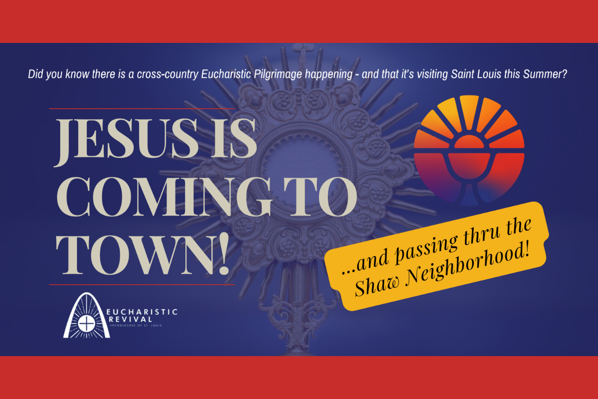 St. Louis is the final stop on one of the four routes of the National Eucharistic Pilgrimage, the Junipero Serra Route. Beginning in California, these pilgrims will travel with our Eucharistic Lord over 2,200 miles, crossing the Rocky Mountains and Great Plains on foot! While in St. Louis on July 5–7, 2024, the pilgrims will participate in a service activity and Eucharistic Adoration. You’re welcome to join them! You can see the full schedule of events in St. Louis (and register to attend) here. (Or you can use this link to access a printable pdf version of the plans for St. Louis).