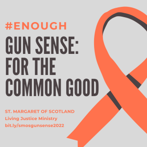 The Living Justice Ministry at St. Margaret of Scotland has assembled a Parish task force to address the epidemic of gun violence in our community – our City, our State, and our Country. Gun Sense: For the Common Good is a faith-based initiative seeking common sense solutions to the issues created by the proliferation of guns in our society – both from a systemic and an advocacy standpoint.