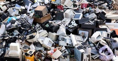 Anything that has a cord or battery – computers, printers, keyboards, laptops, hard drives, cell phones, pagers, radios, scanners, speakers, VCRs, DVD players, fax machines, answering machines, televisions*, stereos, furnaces, water heaters, air conditioners*, microwaves, power tools, kitchen appliances, lawn and garden equipment, etc.