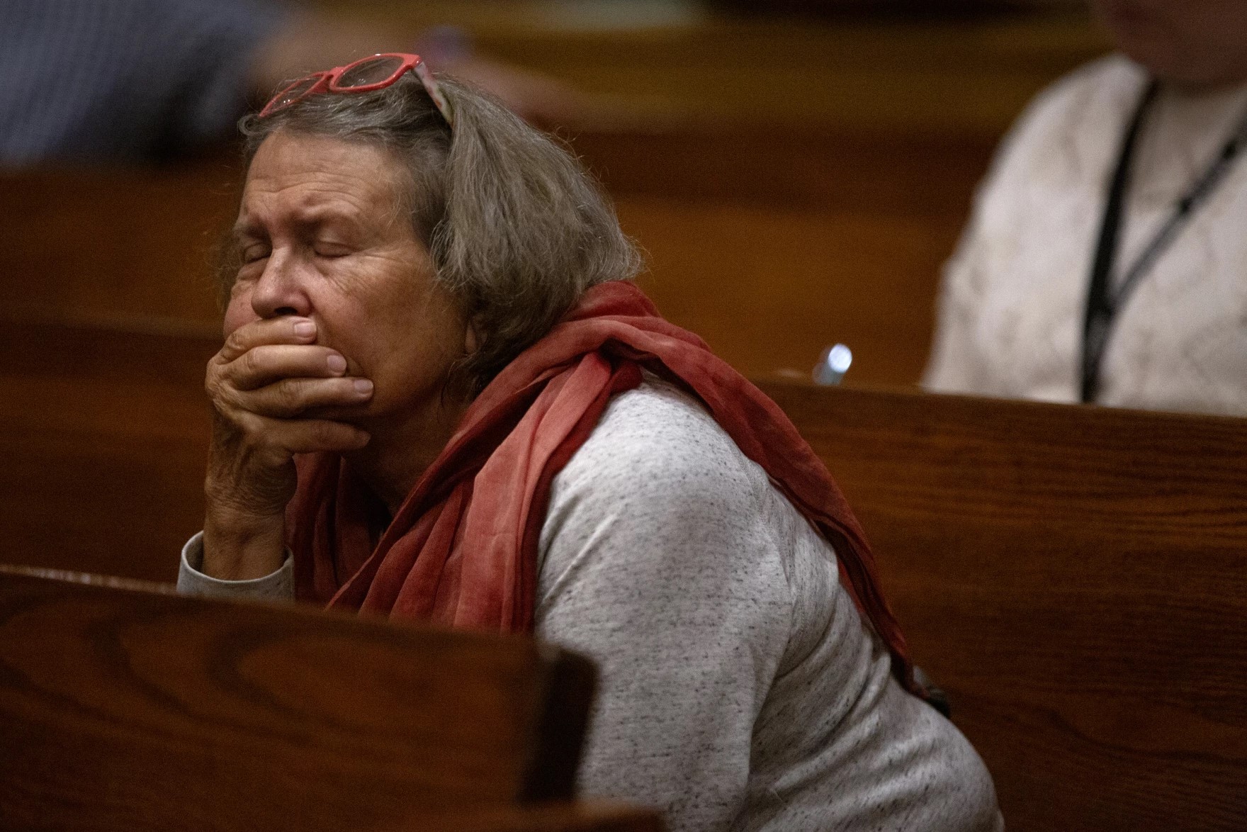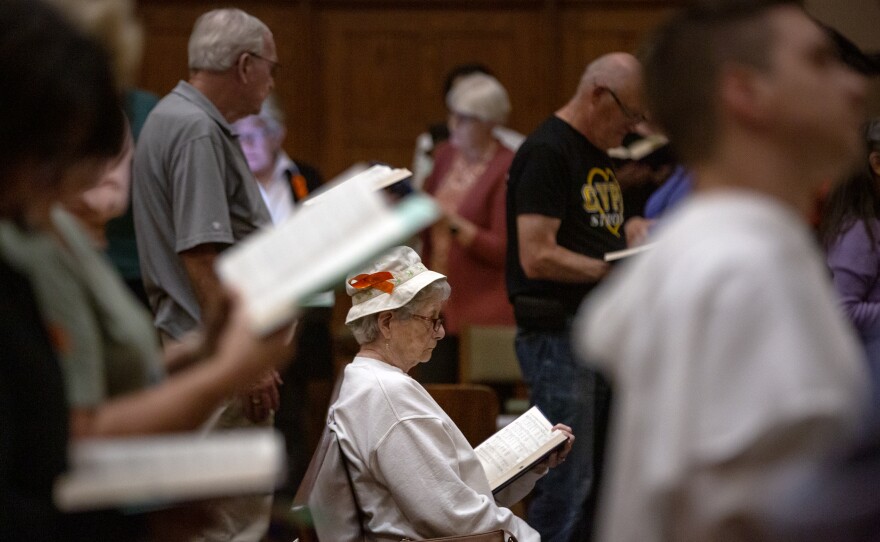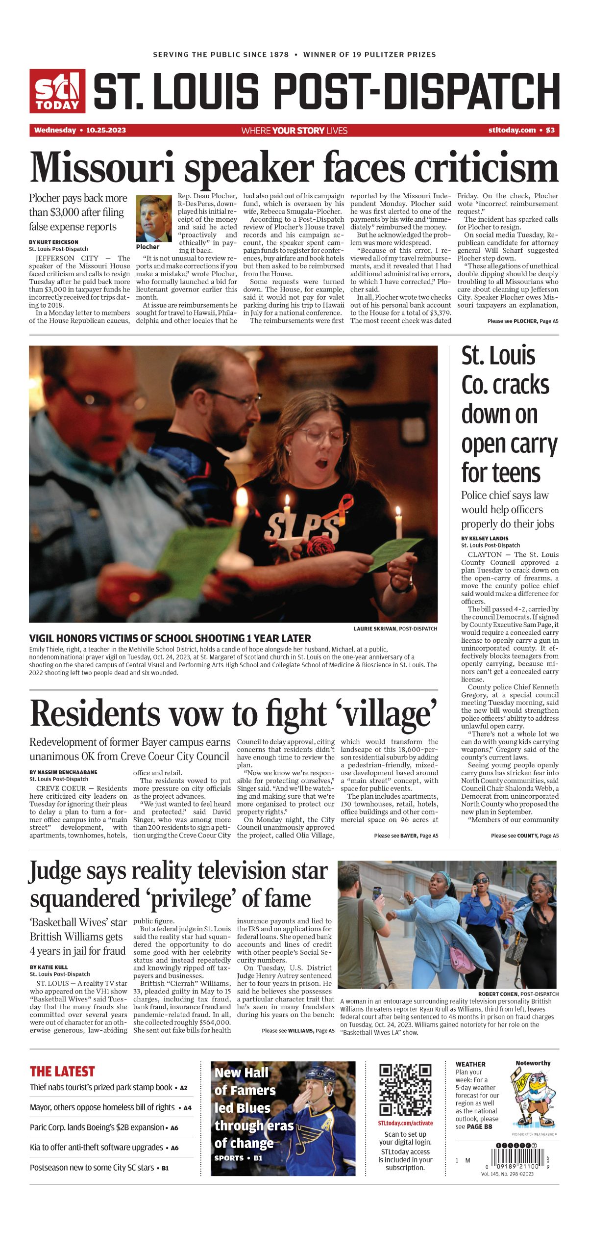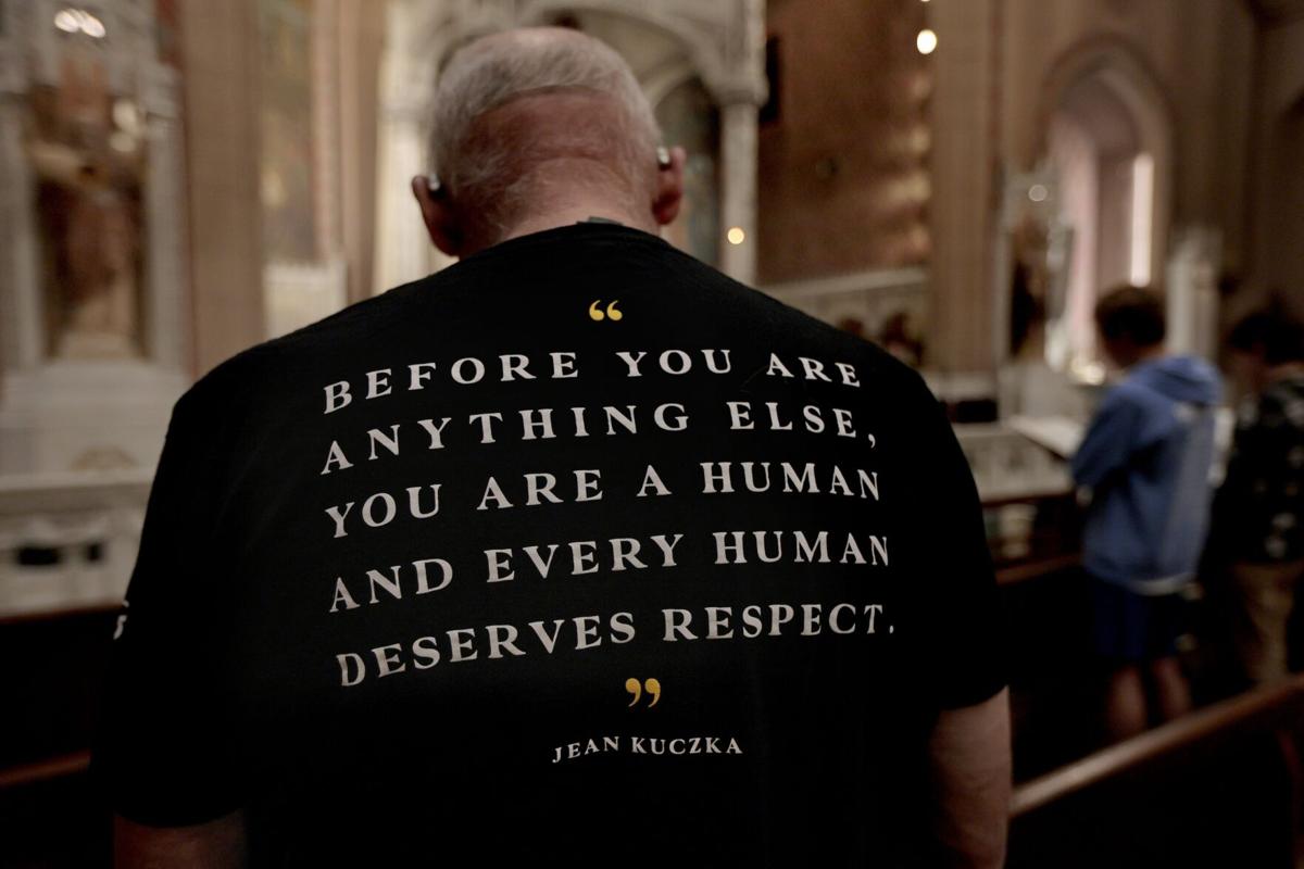 Tristen Rouse/St. Louis Public Radio – Community members hold a prayer vigil for the one-year anniversary of a shooting at a building shared by Central Visual and Performing Arts High School and Collegiate School of Medicine and Bioscience on Tuesday at St. Margaret of Scotland Catholic Church in the Shaw neighborhood of St. Louis.Tristen Rouse/St. Louis Public Radio – LEFT: A man holds a candle during a prayer vigil for the one-year anniversary of a shooting at a building shared by Central Visual and Performing Arts High School and Collegiate School of Medicine and Bioscience on Tuesday at St. Margaret of Scotland Catholic Church in the Shaw neighborhood of St. Louis. RIGHT: Two people embrace during the vigil.Tristen Rouse/St. Louis Public Radio – Collegiate School of Medicine and Bioscience student Molly Schiltz, left, and her mother, Emily, attend a prayer vigil for the one-year anniversary of a shooting at a building shared by Central Visual and Performing Arts High School and CSMB on Tuesday at St. Margaret of Scotland Catholic Church.Tristen Rouse/St. Louis Public Radio – A woman prays during a vigil for the one-year anniversary of a shooting at a building shared by Central Visual and Performing Arts High School and Collegiate School of Medicine and Bioscience on Tuesday at St. Margaret of Scotland Catholic Church.Tristen Rouse/St. Louis Public Radio – LEFT: Gloria Reed attends a prayer vigil for the one-year anniversary of a shooting at a building shared by Central Visual and Performing Arts High School and Collegiate School of Medicine and Bioscience on Tuesday at St. Margaret of Scotland Catholic Church in the Shaw neighborhood of St. Louis. RIGHT: A statue of a monk holding a baby at the church.Tristen Rouse/St. Louis Public Radio – Candles are lit from person to person during a prayer vigil for the one-year anniversary of a shooting at a building shared by Central Visual and Performing Arts High School and Collegiate School of Medicine and Bioscience on Tuesday at St. Margaret of Scotland Catholic Church in the Shaw neighborhood of St. Louis.Tristen Rouse/St. Louis Public Radio – Kathy Petersen, center, attends a prayer vigil for the one-year anniversary of a shooting at a building shared by Central Visual and Performing Arts High School and Collegiate School of Medicine and Bioscience on Tuesday at St. Margaret of Scotland Catholic Church in the Shaw neighborhood of St. Louis. Petersen is a member of the church’s task force on gun violence prevention.Tristen Rouse/St. Louis Public Radio – Community members hold a prayer vigil for the one-year anniversary of a school shooting at a building shared by Central Visual and Performing Arts High School and Collegiate School of Medicine and Bioscience on Tuesday at St. Margaret of Scotland Catholic Church in the Shaw neighborhood of St. Louis.Laurie Skrivan/Post-Dispatch – Emily Thiele, right, a teacher in the Mehlville School District, holds a candle of hope alongside her husband, Michael, at a public, nondenominational prayer vigil on Tuesday, Oct. 24, 2023, at St. Margaret of Scotland church in St. Louis on the one year anniversary of a shooting on the shared campus of Central Visual and Performing Arts High School and Collegiate School of Medicine & Bioscience in St. Louis. The 2022 shooting left two people dead and six wounded.Laurie Skrivan/Post-Dispatch – Molly Schiltz, 15, a sophomore at Collegiate School of Medicine and Bioscience lights a candle of hope alongside her mother, Emily, (right) at a public, non-denominational prayer vigil on Tuesday, Oct. 24, 2023, at St. Margaret of Scotland church in St. Louis, on the one year anniversary of a shooting at Central Visual and Performing Arts High School and Collegiate School of Medicine and Bioscience in St. Louis. The 2022 shooting at the two-school campus left two people dead and six wounded. Photo by Laurie Skrivan, lskrivan@post-dispatch.comLaurie Skrivan/Post-Dispatch – “My granddaughter is a teacher there. I bought this t-shirt last year in support,” said John Merideth, who attends a public, non-denominational prayer vigil on Tuesday, Oct. 24, 2023, at St. Margaret of Scotland church in St. Louis, on the one year anniversary of a shooting at Central Visual and Performing Arts High School and Collegiate School of Medicine and Bioscience in St. Louis. The 2022 shooting at the two-school campus left two people dead and six wounded. Photo by Laurie Skrivan, lskrivan@post-dispatch.com