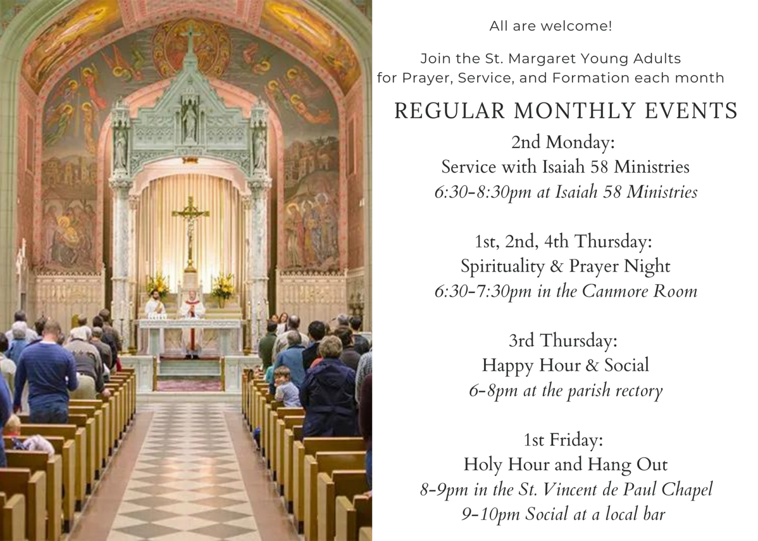 Email youngadults@stmargaretstl.org if you have any questions these upcoming opportunities. And if you want to keep in touch, click the button below to sign up for their jam-packed Flocknotes.