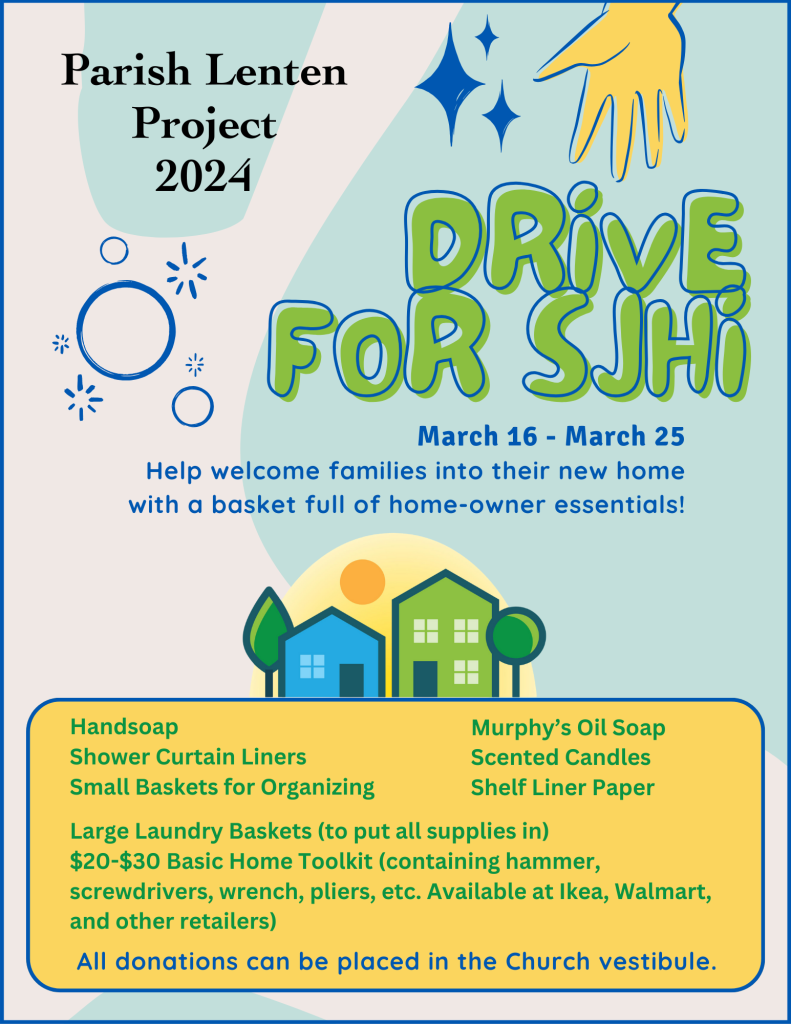 Please see the flyer below for details about supplies needed by SJHI as part of our Parish Lenten Project.