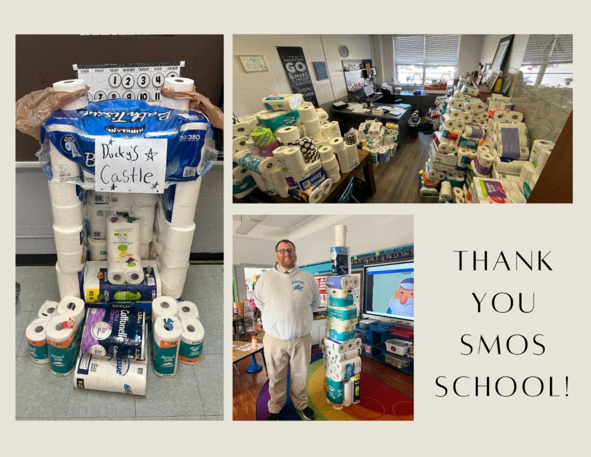They received over $10,000 from 20 new SMOS donors and A LOT of toilet paper from the school!