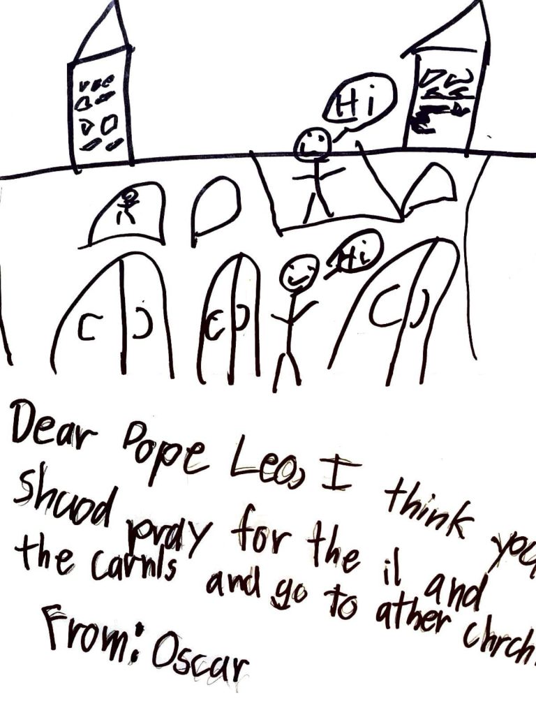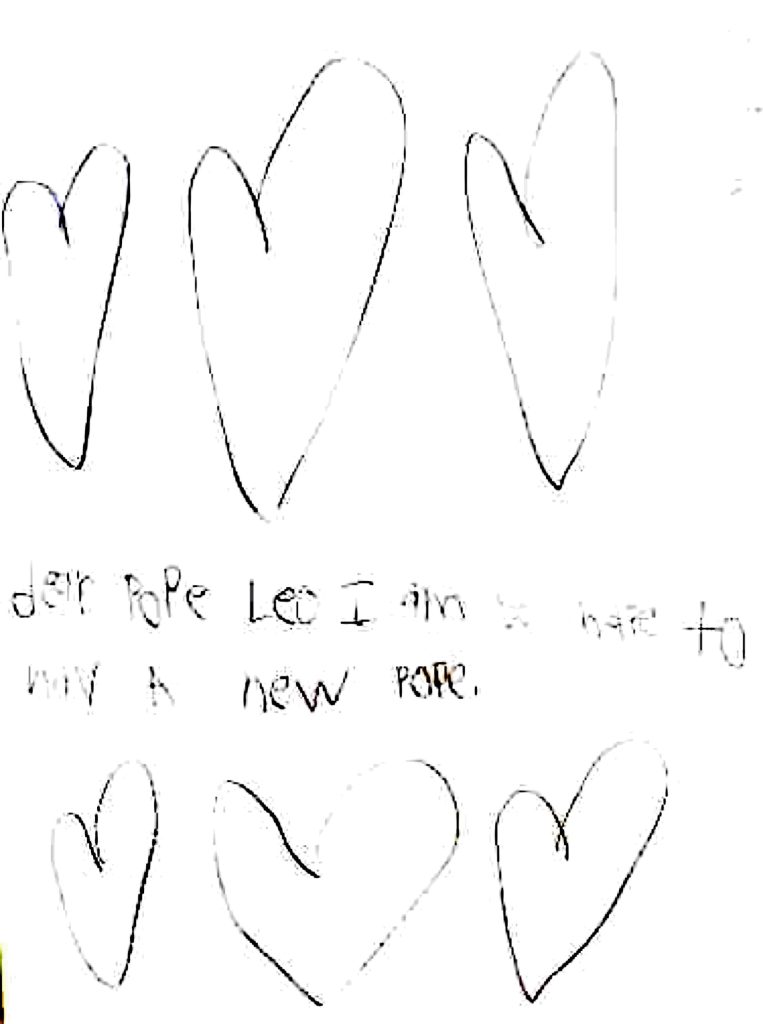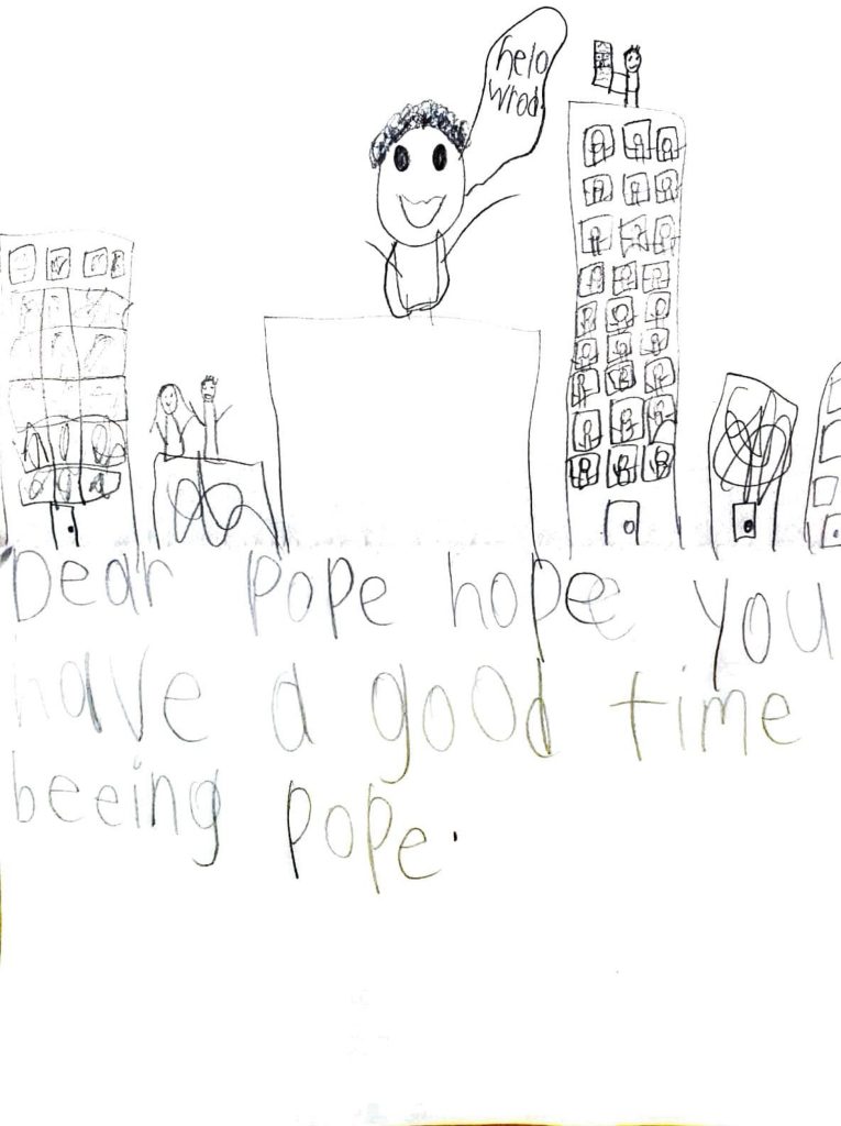 Students and staff alike in our School were eagerly awaiting the white smoke we saw the week before, on the morning of Thursday, May 8. As soon as it appeared, all activities stopped to take a moment to pray for our new Pope Leo.   Many students chose to eat and have recess in their classrooms that day so that they could watch as Pope Leo XIV gave his first Urbi et Orbi address, and they rejoiced at seeing the first American pope. Check out some of these letters written to Pope Leo by our Mrs. Clark’s first graders!