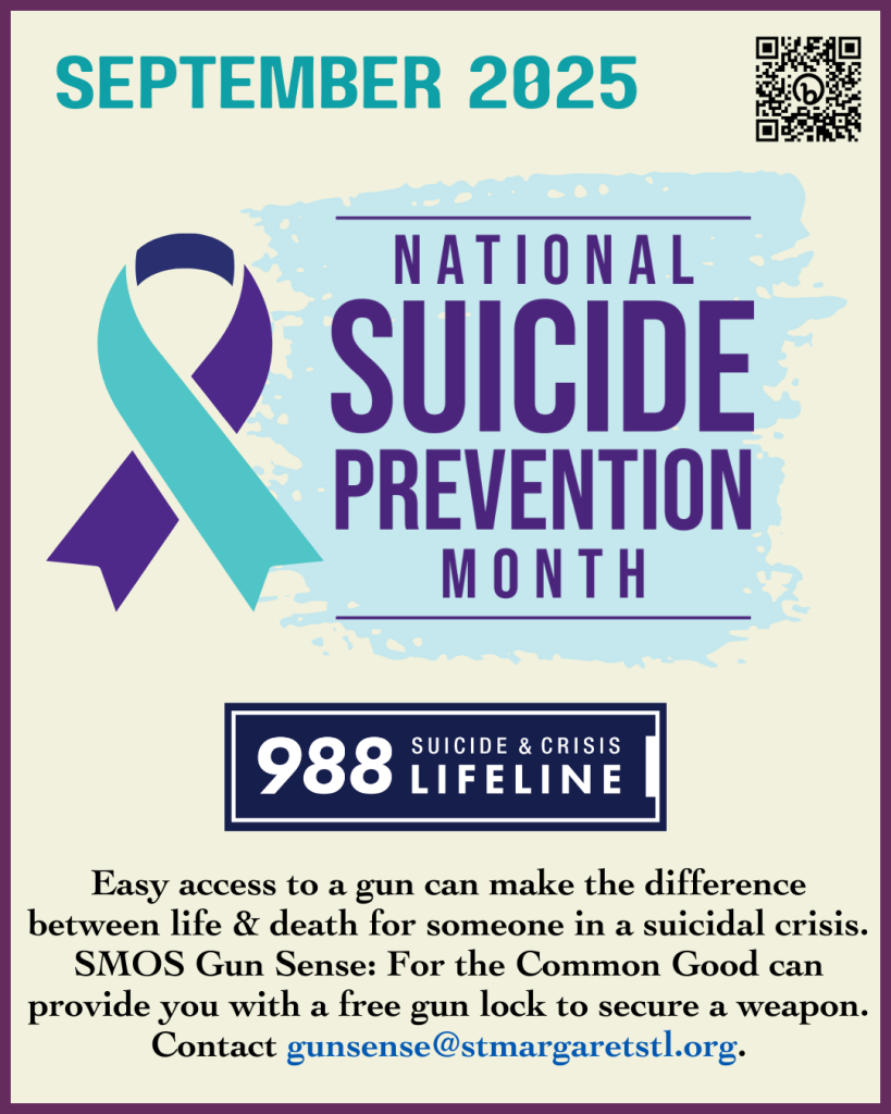 The SMOS Gun Sense team is honoring Suicide Prevention Awareness during the month of September – with special highlights for World Suicide Prevention Week (September 7-13).