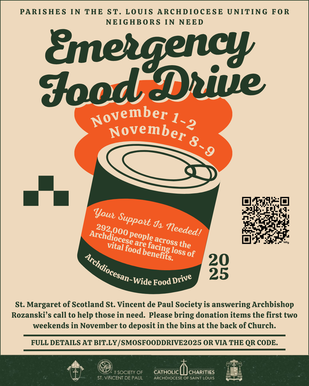 As Fr. Vien mentioned in his homily the weekend of October 25th-26th, Archbishop Rozanski has put out a call to all parishes in the Archdiocese to hold a food collection at the beginning of November to assist those who will not be receiving their essential SNAP benefits due to the government shutdown. You can read more about the Archbishop’s plea in his letter below.