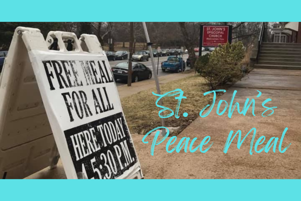 On Saturdays throughout the year, St. John’s Episcopal Church (3664 Arsenal St., St. Louis, MO 63116) provides a “Peace Meal” to those experiencing homelessness in the area. They call it the “Peace Meal Project” because they know that a meal is only a small piece of the puzzle when it comes to addressing poverty, inequality, and loneliness.