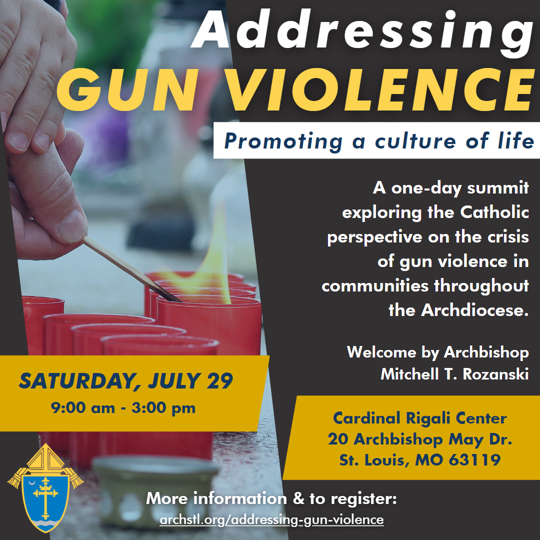 This summit on gun violence prevention will likely sell out this week – so please be sure to get your spot before registration closes! Members of the Living Justice Ministries – Gun Sense: For the Common Good team have been hard at work helping to plan this July 29th event for the entire Archdiocese. We encourage all SMOS parishioners and school families to attend to join other parishes in this effort at the Archdiocesan level and also demonstrate how important this issue is to our community (sign up for morning or afternoon session – or both).