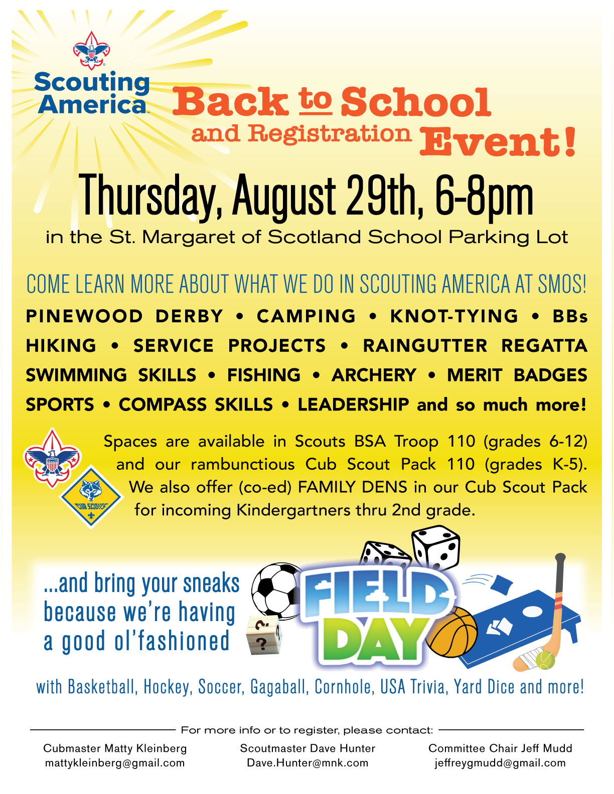 and the rambunctious Cub Scout Pack 110 (grades K-5).