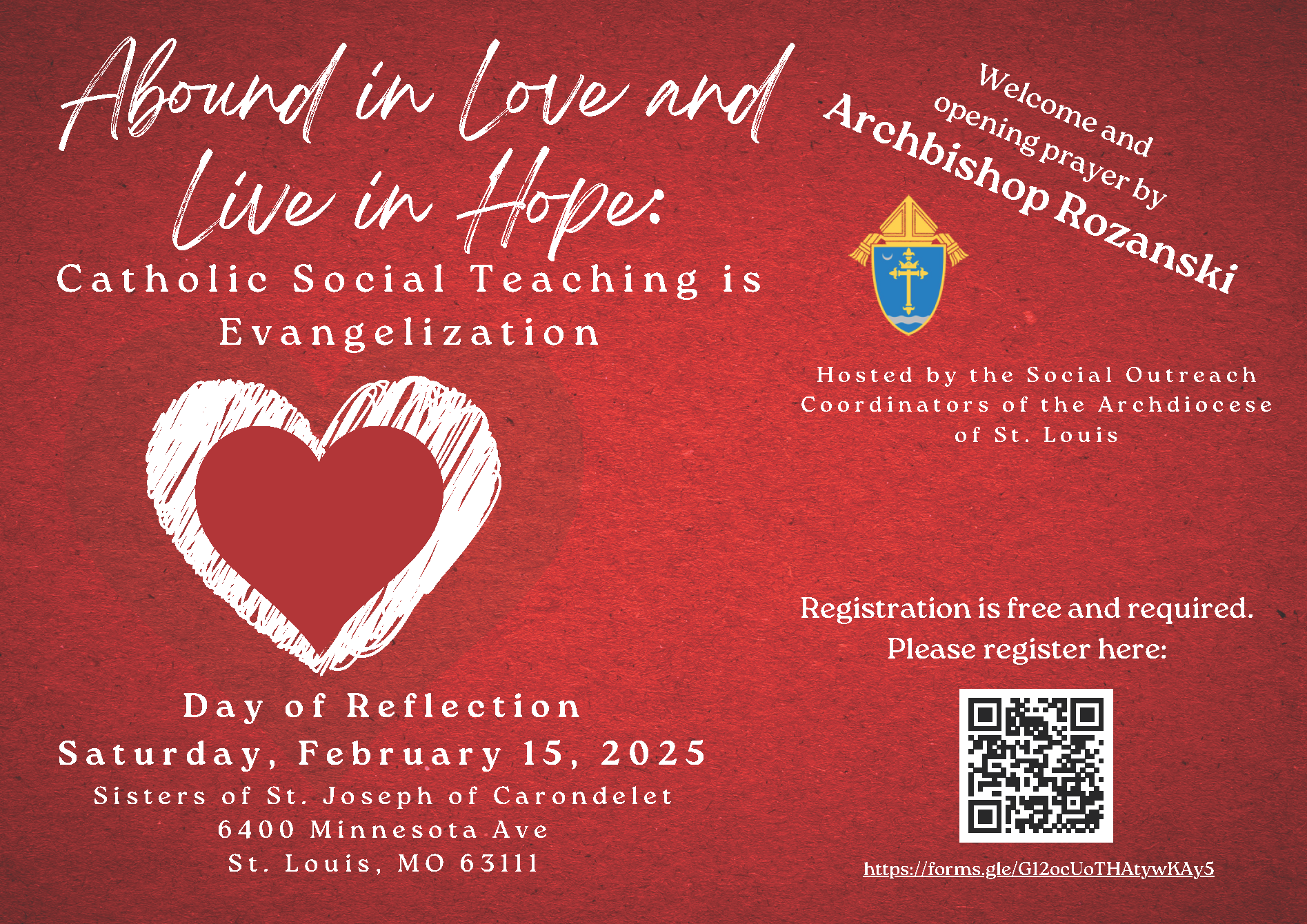All are welcome to join members of the Living Justice Ministries at a Social Justice Day of Reflection on Saturday, February 15, 2025, with the Sisters of St. Joseph of Carondelet. More info at the link below.