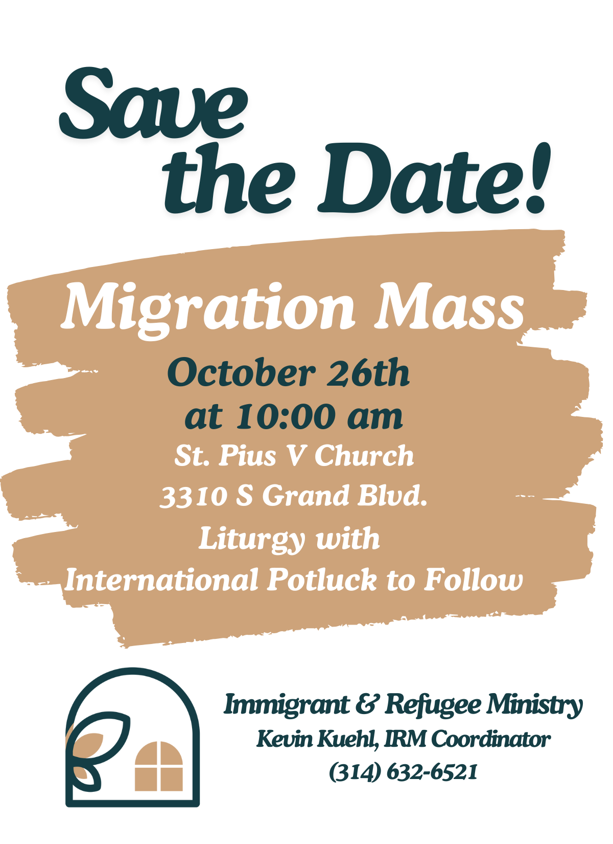 Mark your calendars! The Immigrant & Refugee Ministry is putting together the details for their annual Migration Mass at St. Pius. Details to come…