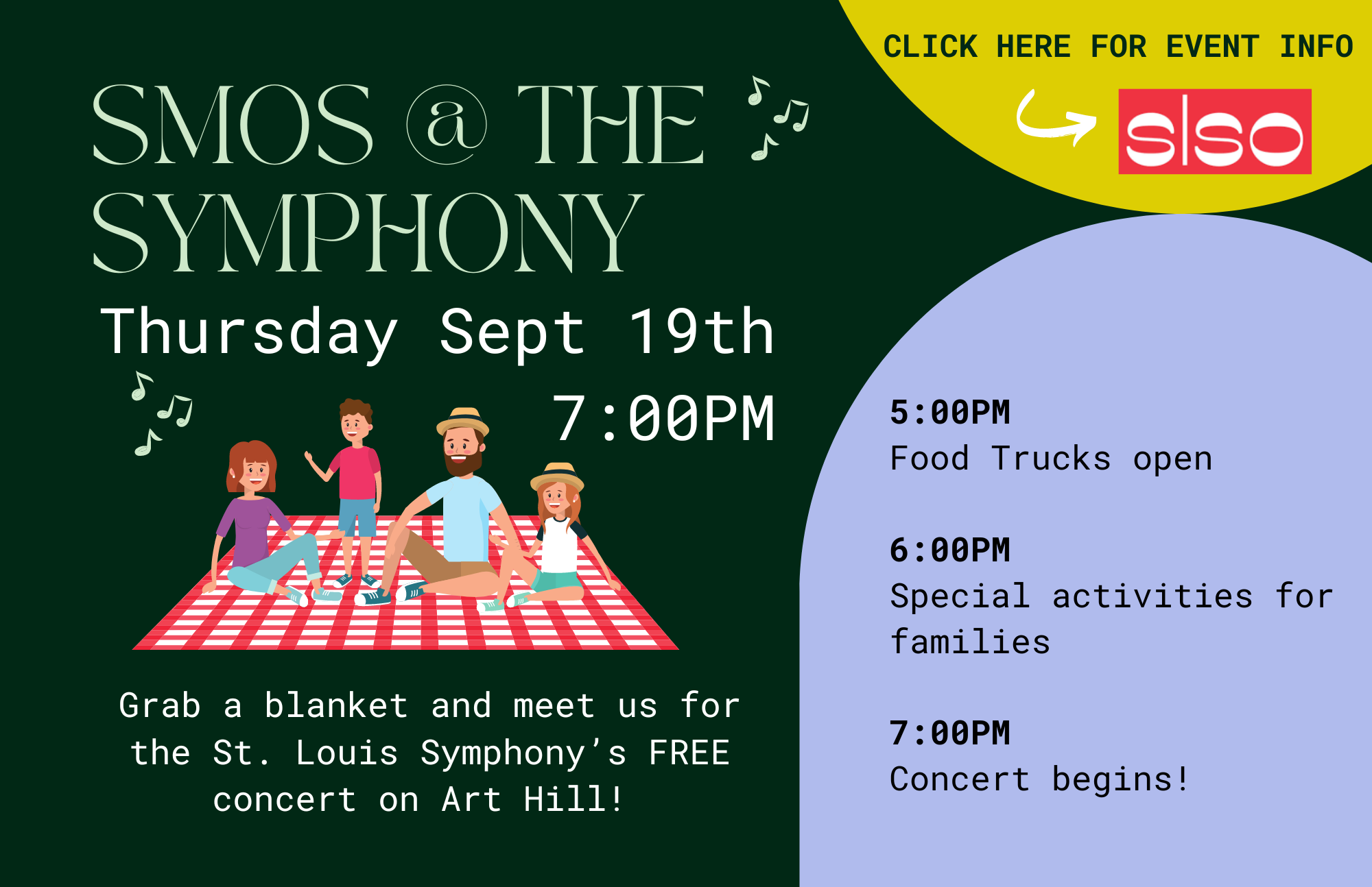 Ms. Chrostoski is organizing an opportunity for SMOS School families to gather on Art Hill for the St. Louis Symphony’s FREE opening concert this year! She will be saving space early with blankets – look for the SMOS signs and join in the fun!