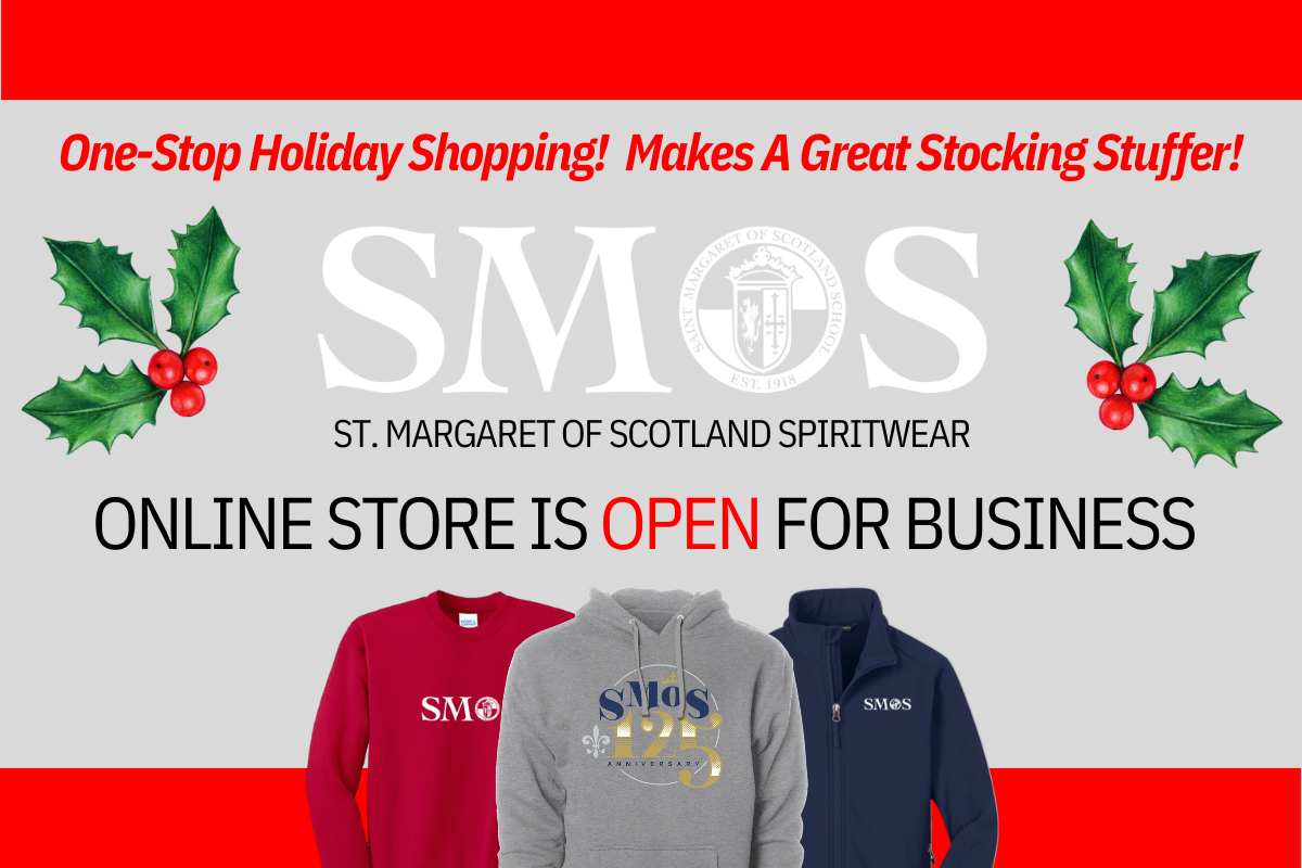 The SMOS PTA has you (and Santa!) covered this Christmas season with new St. Margaret of Scotland Spiritwear! The SMOS elves have been hard at work on some great new options, just in time for your holiday shopping. Check out the latest: