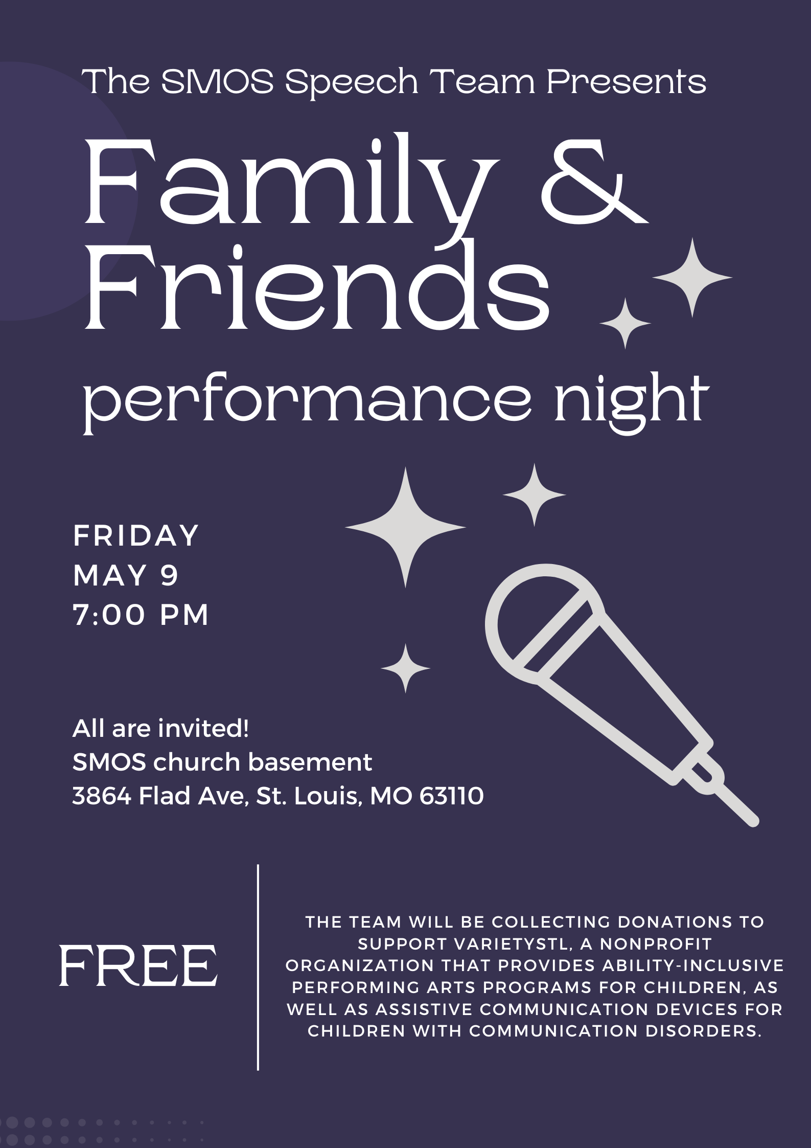 And don’t forget… if you would like to catch these fantastic speeches, please be sure to join us on Friday, May 9 in the Church Hall for a night of performances. See flyer below for details.
