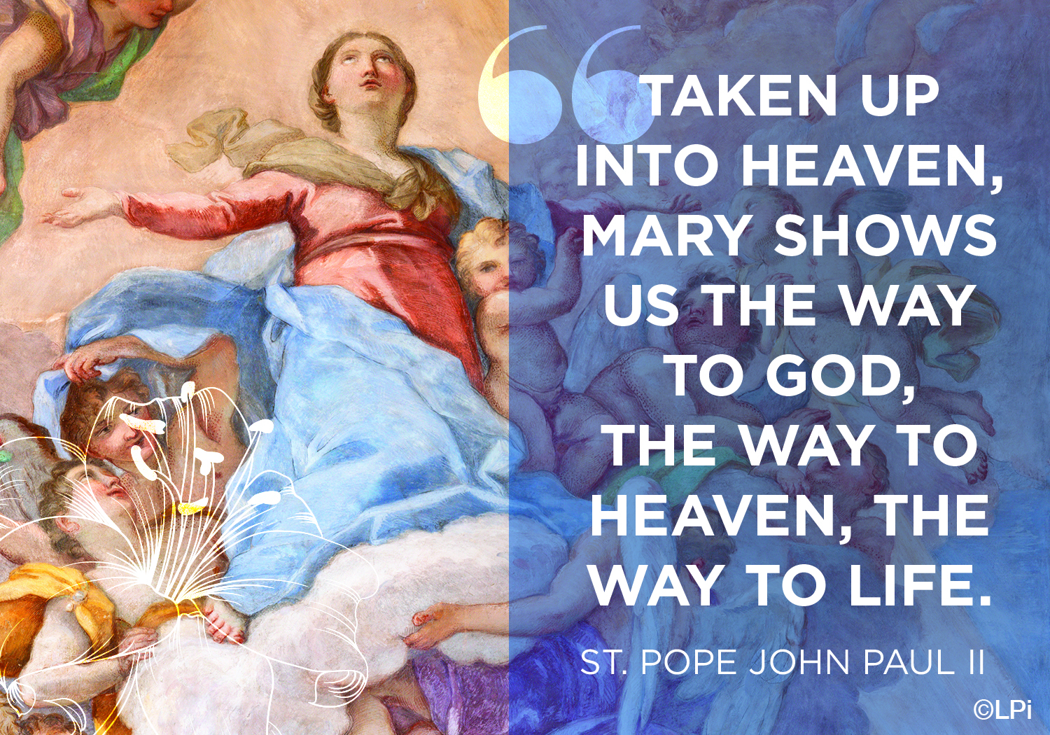 August 15th commemorates Mary’s Assumption, not her Ascension. Christ ascended into heaven via His own power and Mary was taken up to heaven by the power of God. The Assumption of Mary is something God did for her. It is the result of Christ’s redemptive power applied to His Blessed Mother.