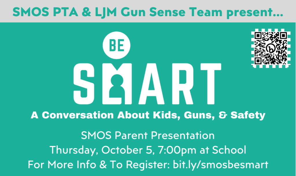 You can register for the event at bit.ly/smosbesmart – OR just show up. We hope you can join us to help the SMOS community to BeSMART, and keep our children safe.