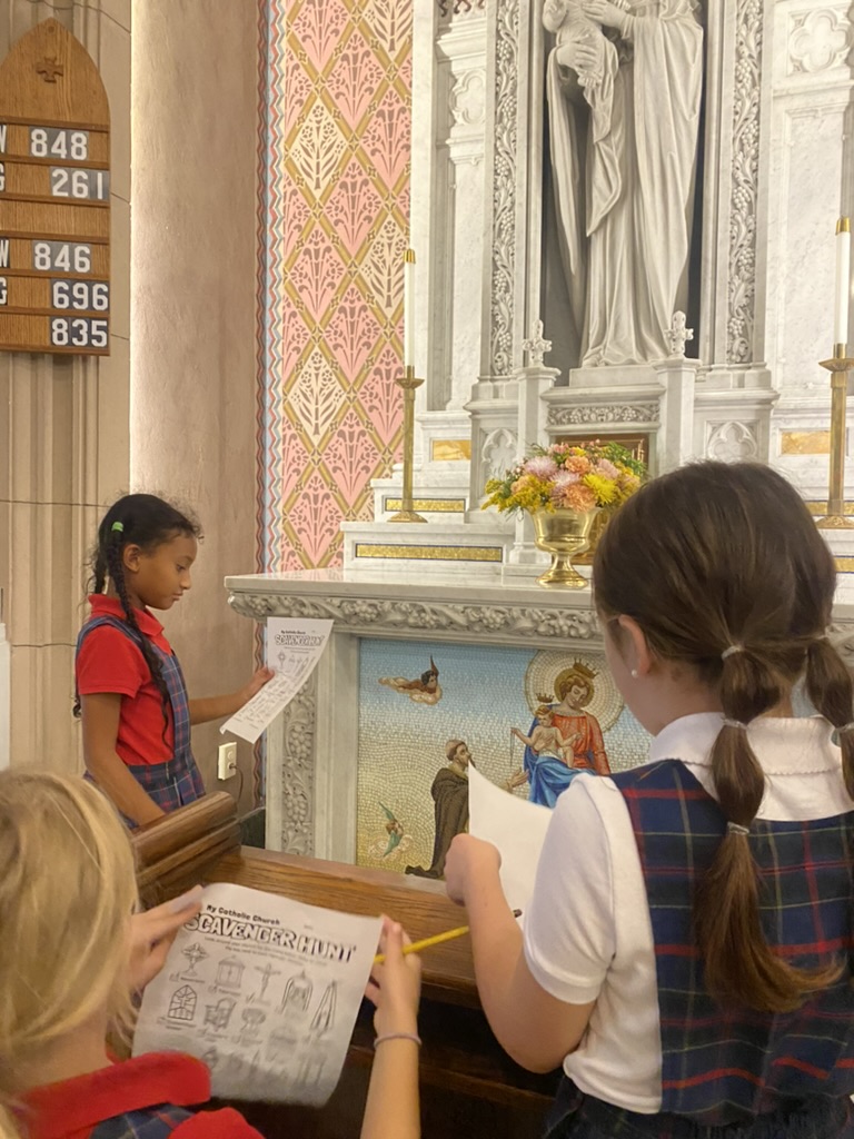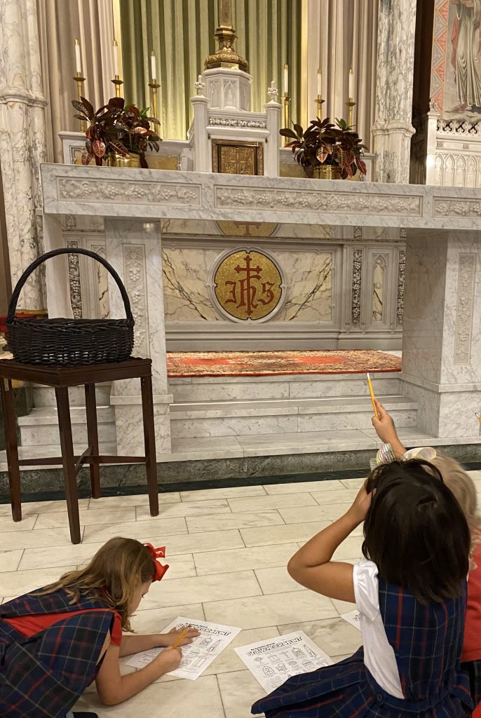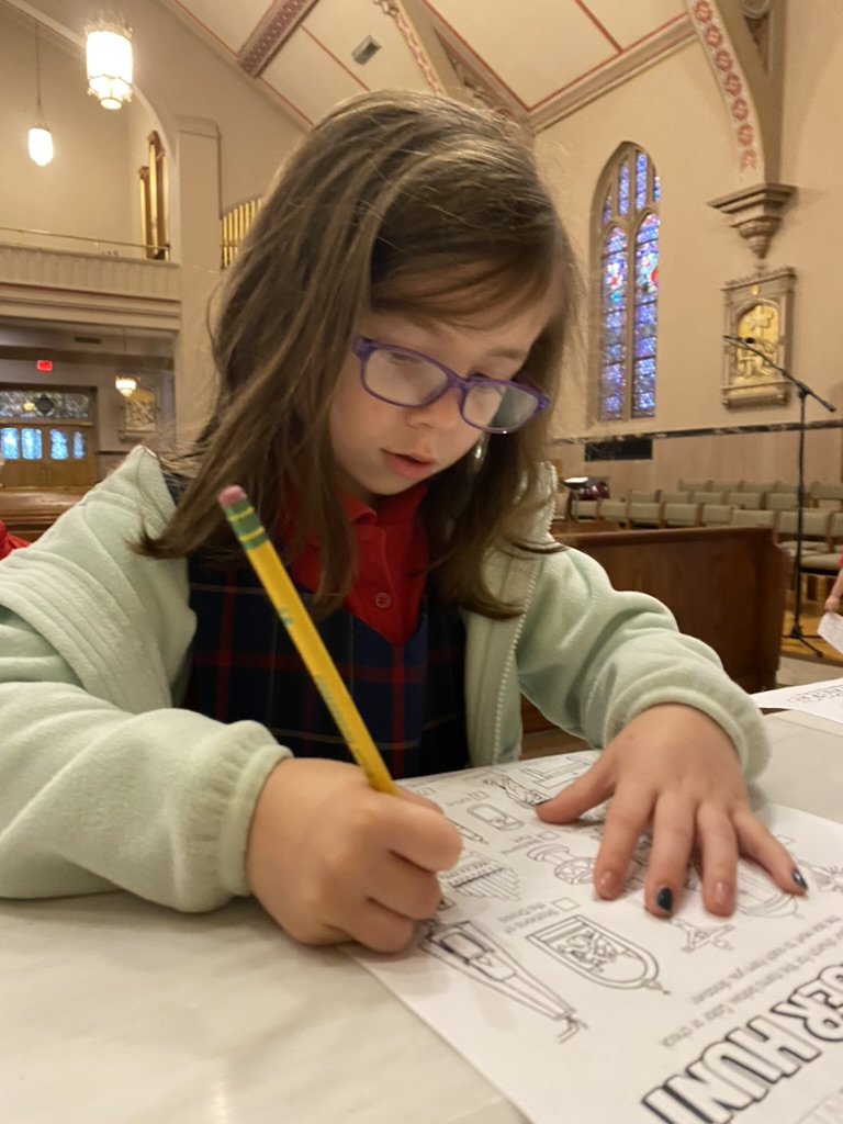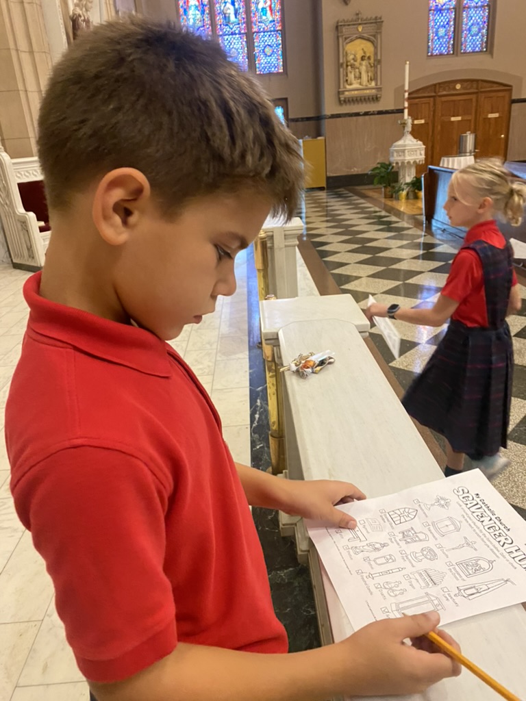 This week we have been venturing over to church to do a scavenger hunt! Taking this time to explore our worship space and the objects in it allows us to deepen our connections with the Mass itself, as we are now more familiar with some of what we are seeing.