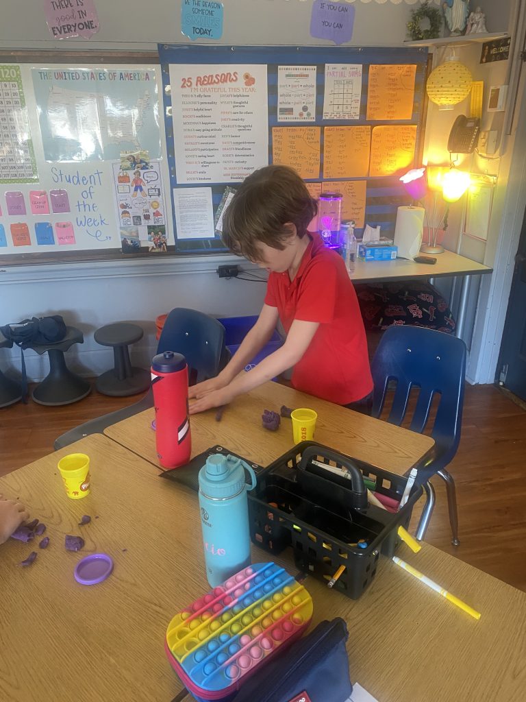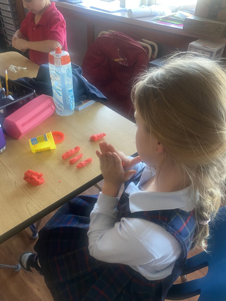 This week marks the end of Black History Month 2024. As such, we wanted to celebrate by honoring some of our Black saints! Students learned about influential figures like St. Martin de Porres, St. Josephine Bakhita (our saint of the month!), St. Monica, St. Augustine, and St. Moses the Black. After hearing about each saint, the students were tasked with creating something out of playdough that helped them remember the story of that saint. We ended the lesson by talking about how it is important to honor these saints all year – not just during a specific month.