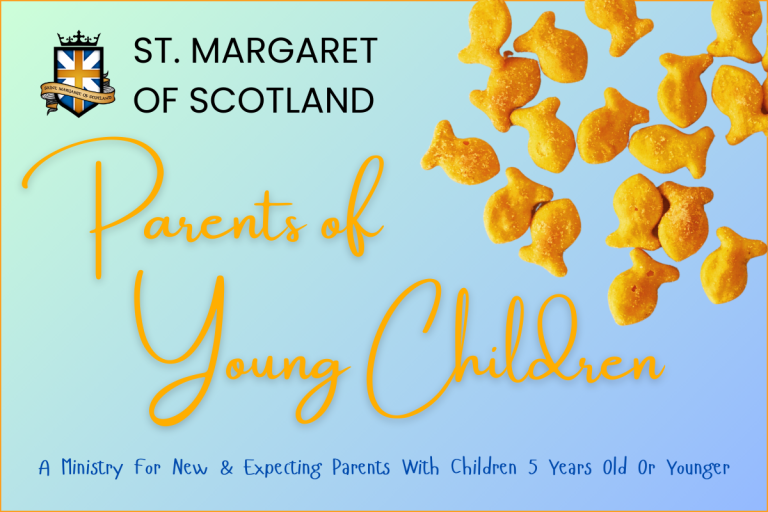 The mission of the Parents of Young Children (PYC) ministry at St. Margaret of Scotland is to foster Christ’s love in our community by actively living Catholic Values in a way that creates fellowship among parents, children, and families. Inclusive of pregnant people, moms, dads, legal guardians, caregivers, foster parents – anyone that is currently charged with raising a young child up to 5 years old.