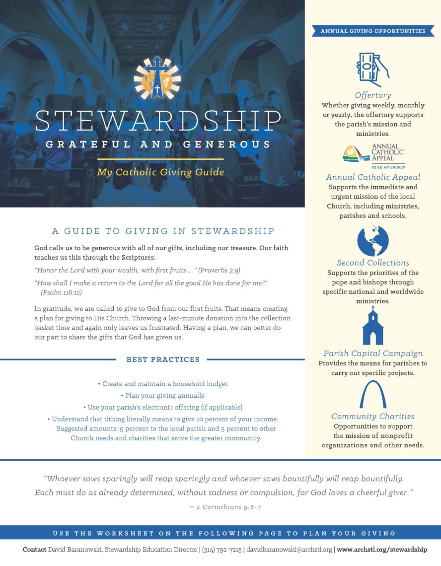 The below guide illustrates stewardship best practices and a worksheet to plan your annual giving to the Church and other causes. And our online giving tool, WeShare, makes annual giving to St. Margaret of Scotland easier than ever before. If you have questions or would like assistance setting up an online giving account, please contact the rectory at 314-776-0363.
