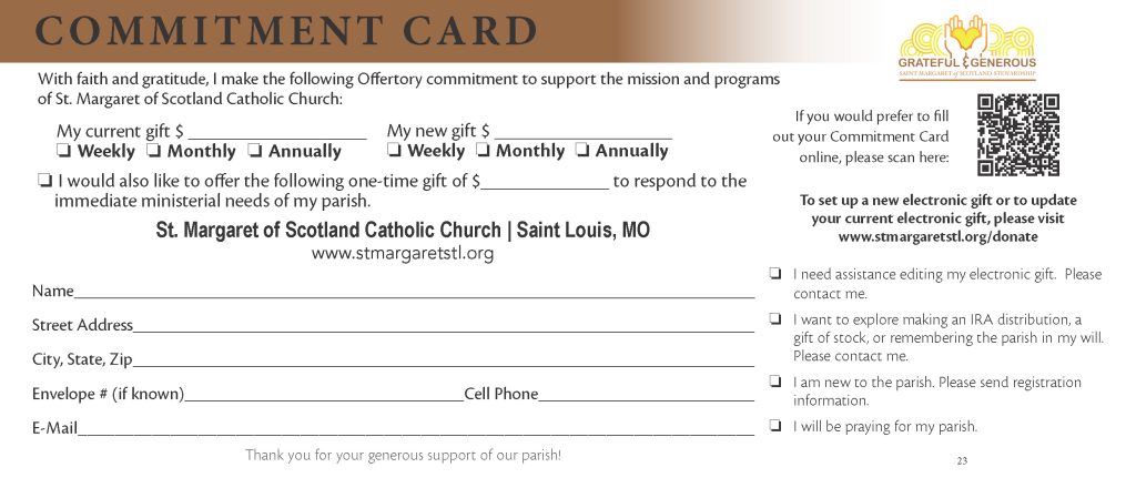 Thank you for making an increased offertory pledge and for all you do for St. Margaret of Scotland!
