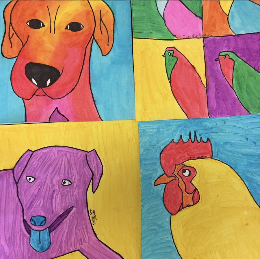 Students in grades K – 8 attend weekly art classes with Ms. Loser. The lessons include many different artists, mediums, and techniques. Some of the favorite lessons are pop art, saint drawings, clay, weaving, and pastels.